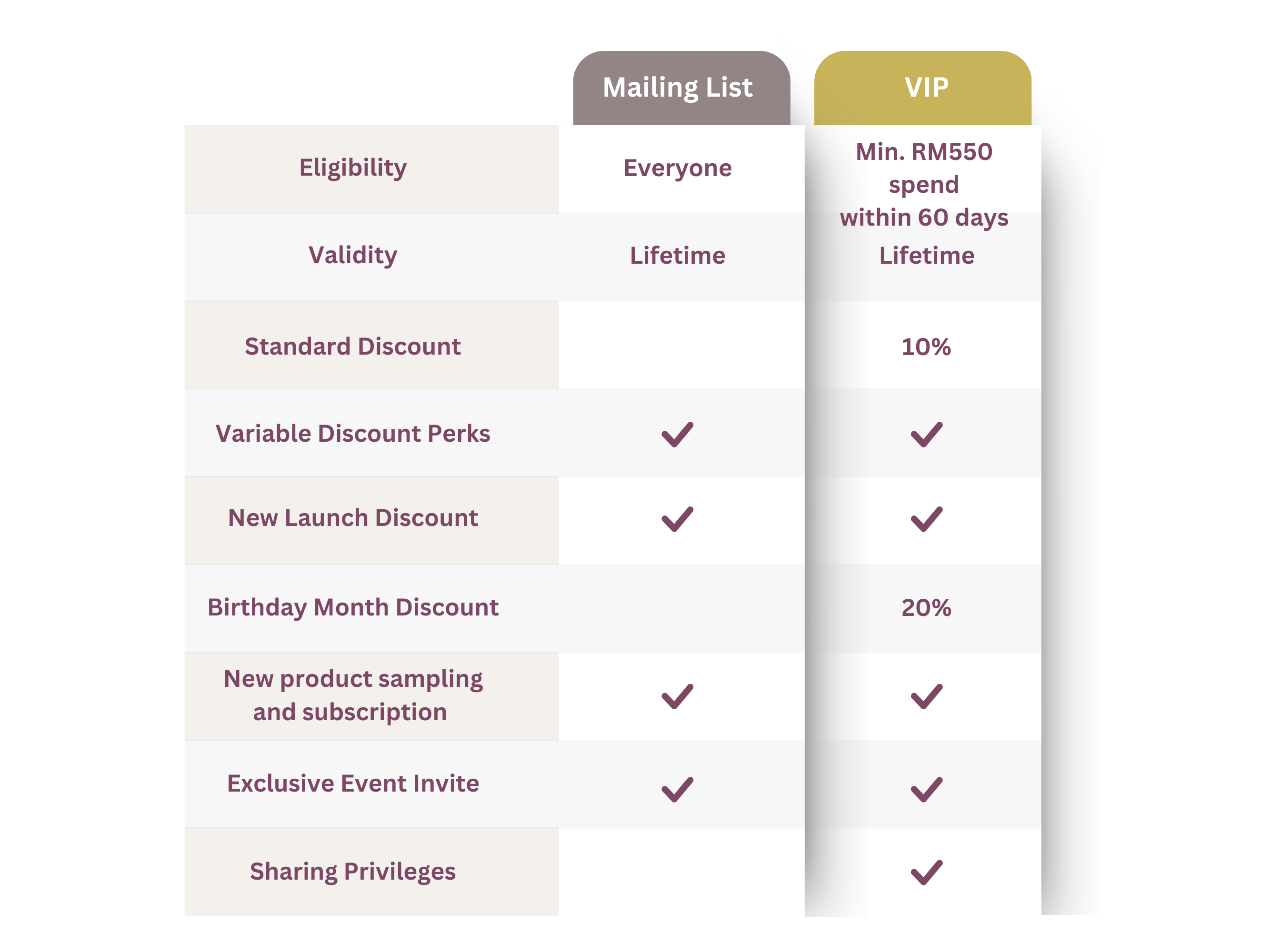 Membership details apply to the Malaysia Membership only. For information on HYSSES membership in your region, please enquire at your local retail boutique.