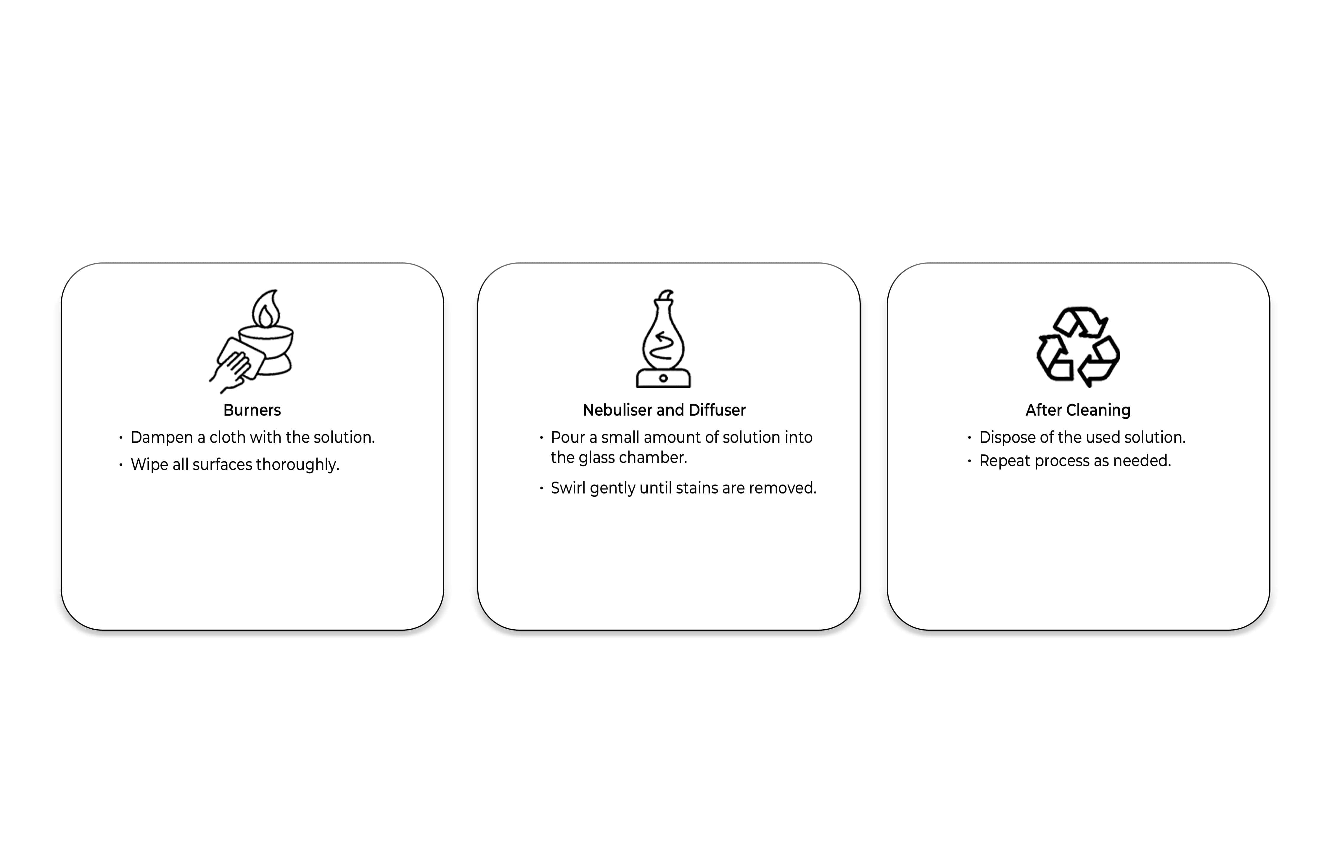 Effortlessly cleans burners, glass chambers, and ultrasonic mist diffusers. This gentle, non-toxic formula removes residue without harsh chemicals—ideal for maintaining and preserving the performance of your aromatherapy devices.
