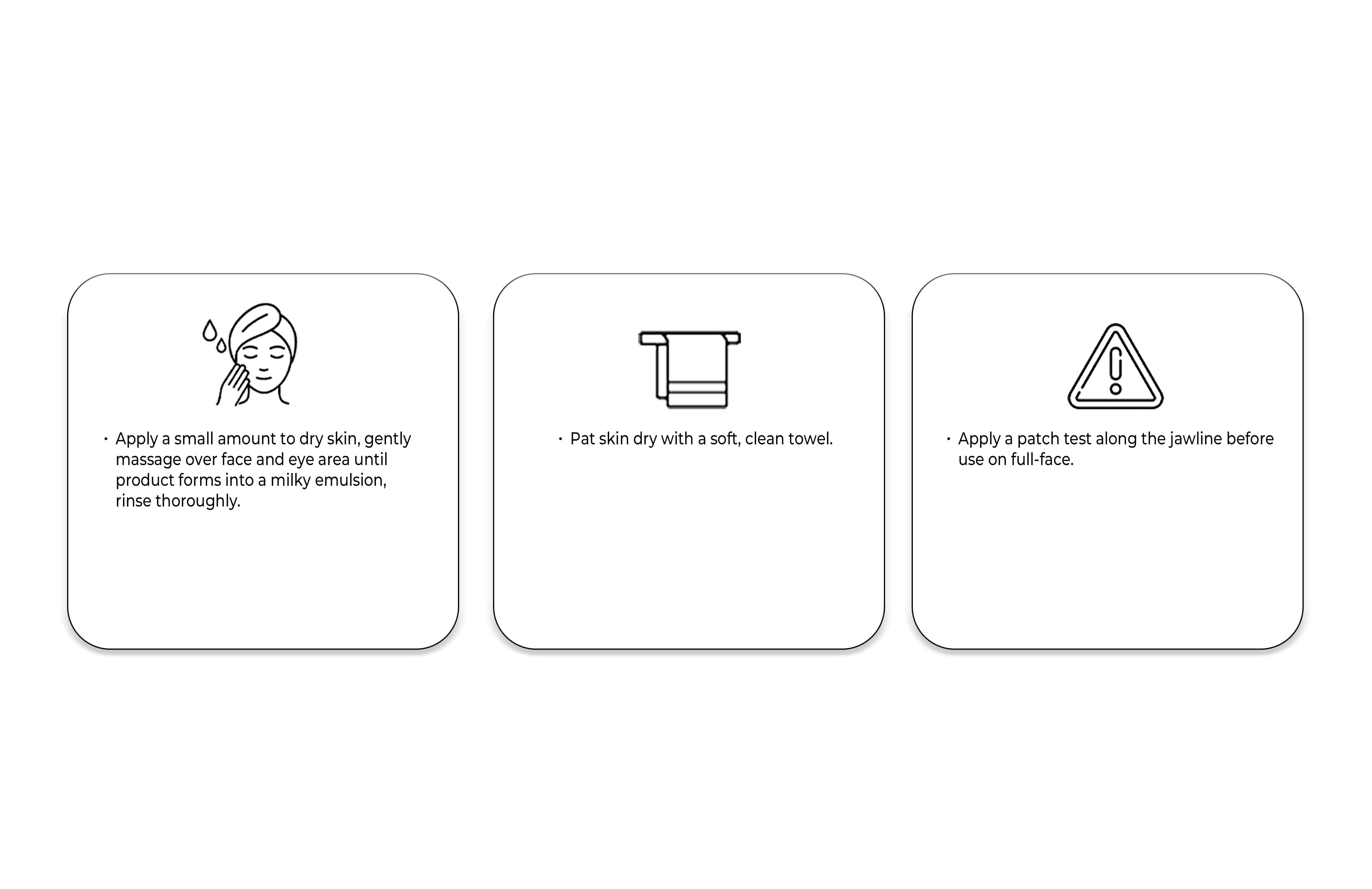 This lightweight cleansing oil gently dissolves makeup and impurities while soothing dryness and irritation. Powered by rice bran, jojoba, and vitamin E, it replenishes moisture and restores skin’s natural radiance. Skin feels clean, soft, and balanced—never tight or stripped.